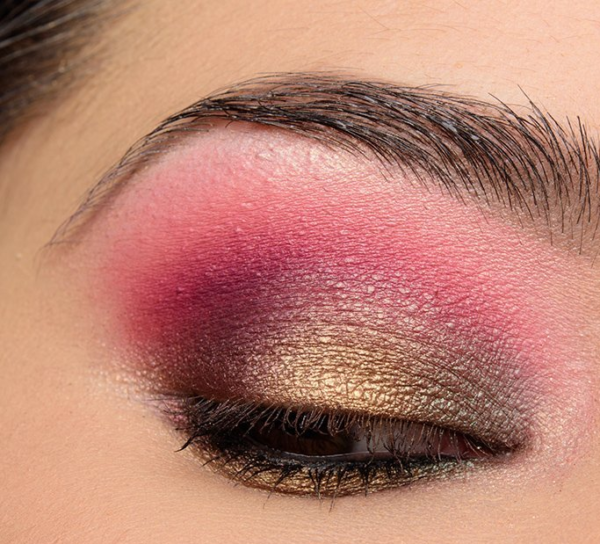 – Dùng cọ chuyên dụng đánh màu mắt từ giữa bầu mí mắt sang mí khoé mắt, dài xuống đuôi mắt. Sau đó tán đều màu mắt lên qua mí mắt và một lớp nhẹ dưới mi mắt để tạo điểm nhấn và chiều sâu cho mắt, bạn cần phủ một lớp phấn nâu theo khối chữ V ở đuôi mắt.