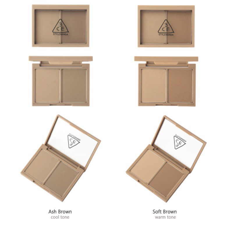 Phấn tạo khối 3CE Contour Shading gồm 2 tông màu, tương ứng với undertone da ấm và undertone da lạnh.