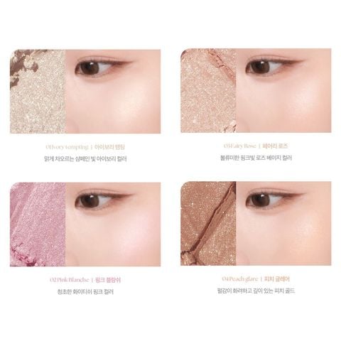 - Bảng highlight có 4 ô màu khác nhau: champagne, pearl, rose gold và bronze