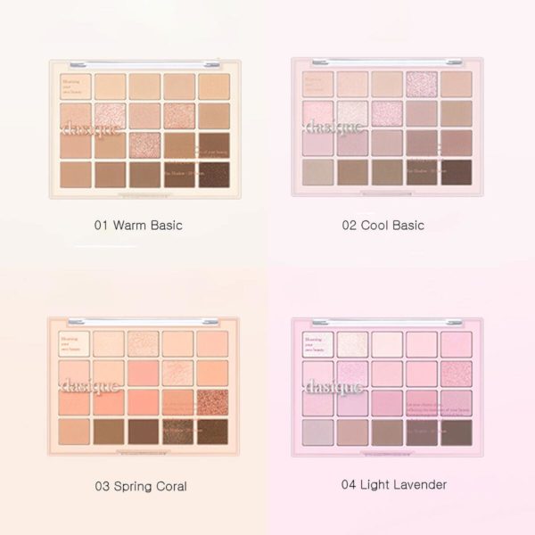 – Bảng phấn mắt gồm 20 màu siêu xinh, vẫn giữ đúng kiểu dáng thanh lịch vốn có của Dasique nhưng dải màu được bảng phát triển rộng hơn để đa dạng các makeup look hơn.