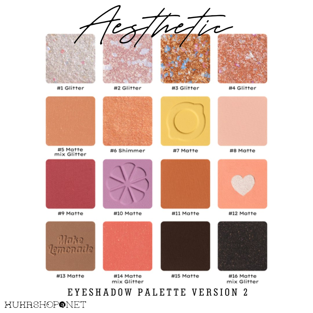 Bảng Mắt Lemonade Aesthetic Eyeshadow Palette bao gồm 16 ô màu với kết cấu hạt phấn siêu mịn lì cùng với độ lên màu siêu chuẩn, khả năng bền màu và lâu trôi suốt cả ngày dài, bảng màu ấn tượng dễ phối với nhau dễ sử dụng cho nhiều bối cảnh, cho mọi phong cách cá tính và phù hợp cả cho người mới bắt đầu.