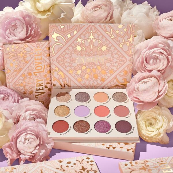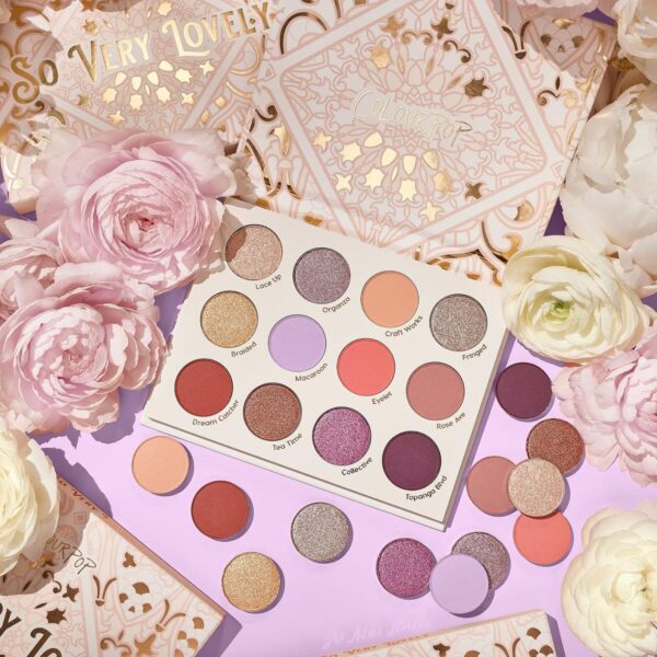 Nắm bắt sự lãng mạn và dịu dàng, bảng màu mắt Colourpop so very lovely 12 ô mang đến sắc thái mơ mộng như một nàng công chúa. Sự kết hợp mềm mại sắc màu của rượu sâm panh, màu hoa cà và hoa đào kết hợp với các tông màu đặc sắc như quả mọng và đất nung để tạo ra một bảng màu đa dạng. Tạo ra những lớp makeup đa chiều với một loạt các lớp màu nhũ kim loại và ánh mờ.