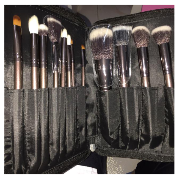 -Bộ cọ này gồm 12 cây dùng để trang điểm đầy đủ cho mặt và mắt, mỗi cọ có một giá đỡ và tay cầm bằng kim loại mạ đồng độc đáo và sang trọng, tất cả được đựng trong một túi xinh xắn rất tiện để mang theo bên mình hay đi du lịch.