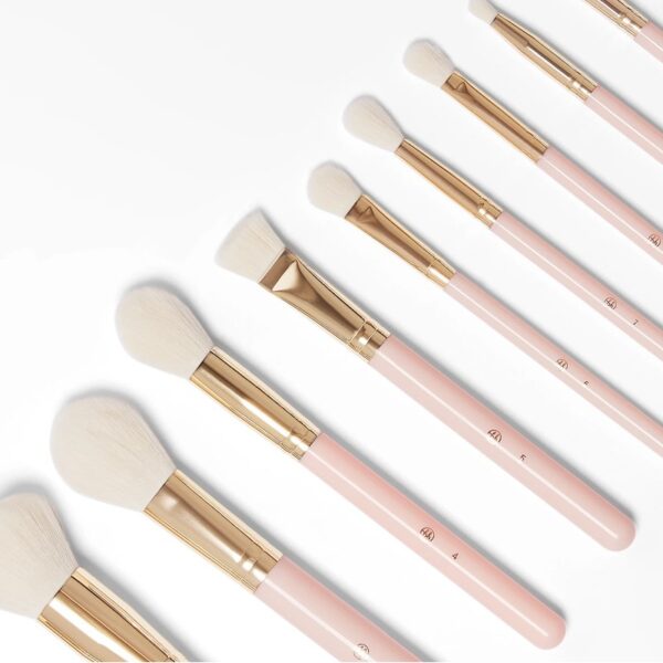 BH Cosmetics Fairy Lights Brush Set 11 Piece Set with Holder với thiết kê thân cọ màu ánh hồng, lông cọ từ lông nhân tạo với gam màu trắng ngà mềm ượt không gây kích ứng hay châm chích da, các shape cọ cực kì dễ dùng chuyên dụng cho các cô nàng makeup cá nhân và mới tập makeup nè. Ống cọ đi kèm đúng như cái tên Fairy Lights ẻm được đính kim tuyến phải gọi là siu siu lấp lánh luôn nè.
