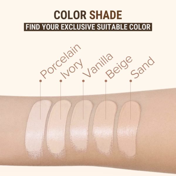 – Kết cấu dạng lỏng non-nano với độ che phủ cao, che phủ hoàn toàn các khuyết điểm, khuyết điểm, vùng da sạm màu và quầng thâm dưới mắt.