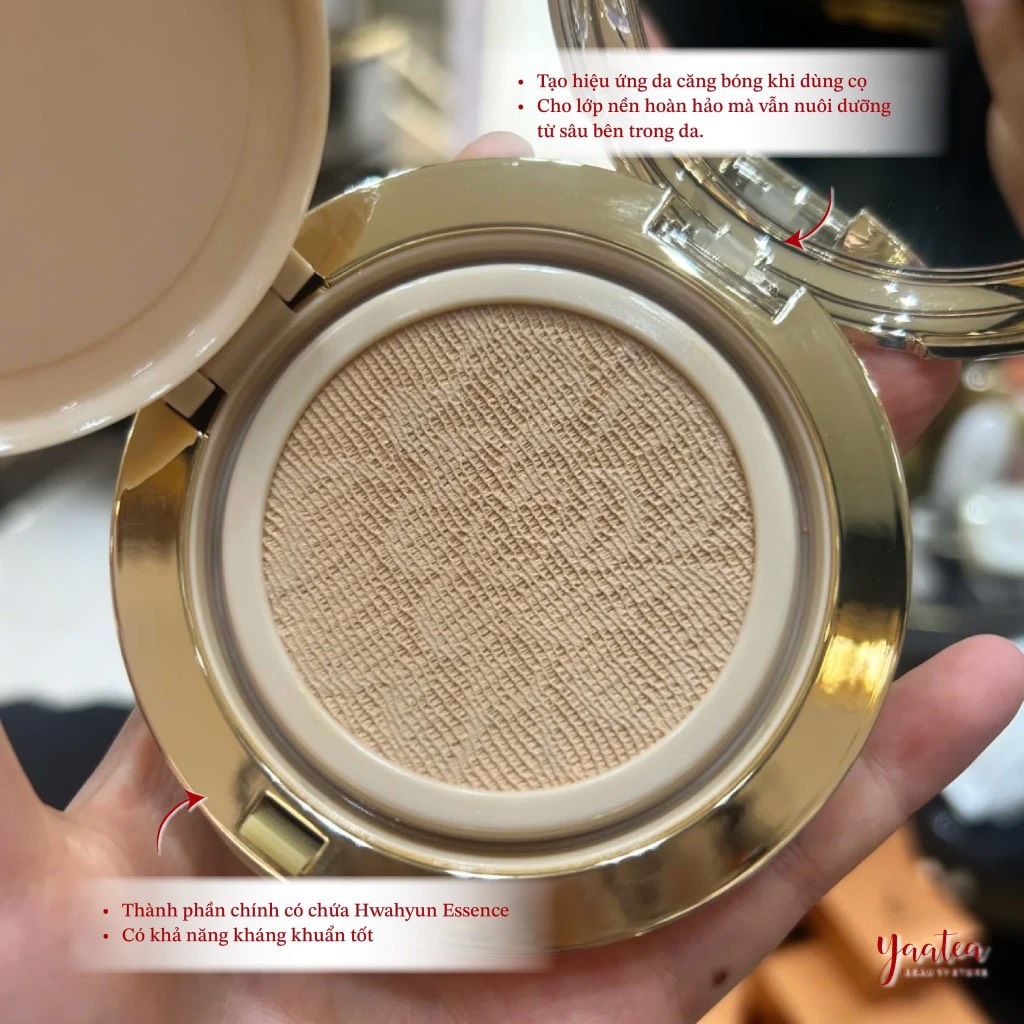 - Công nghệ cấp ẩm & kiểm soát dầu: Dạng cushion giúp cung cấp đủ độ ẩm cho da trong khi kiểm soát lượng dầu thừa, tăng khả năng đàn hồi mà không bít lỗ chân lông.