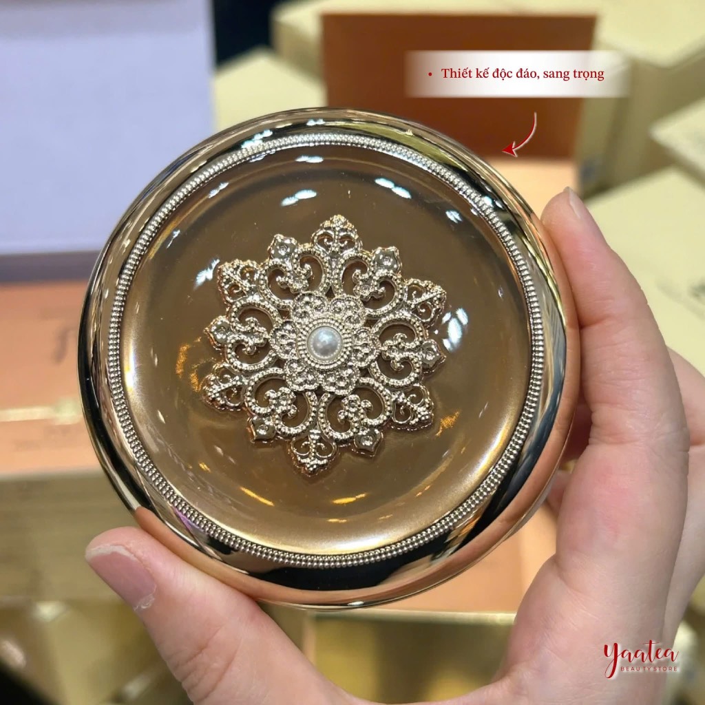 - Thiết kế độc đáo: Họa tiết hoa mẫu đơn thêu tay tinh tế trên bề mặt cushion tạo điểm nhấn độc đáo, đồng thời là lớp bảo vệ cho kem nền luôn tươi mới.