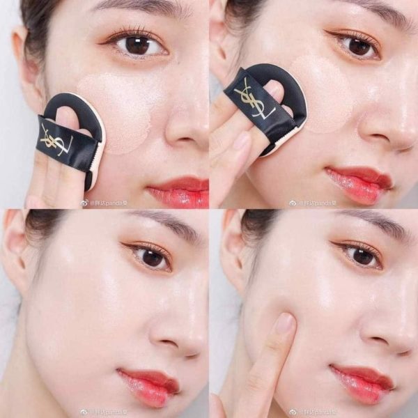 – Cushion YSL độ bền màu cao. Khả năng che phủ khuyết điểm rất rất tuyệt, làm mờ lỗ chân lông, nếp nhăn, thâm mụn và vùng da ửng đỏ.