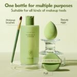 Dung dịch vệ sinh chuyên dụng giúp loại bỏ mỹ phẩm, bụi bẩn và dầu thừa tích tụ trên cọ và mút trang điểm.