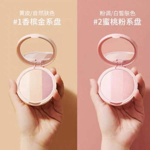 – Bảng highlight Too Cool For School sẽ bao gồm 3 ô màu phấn trải đều từ vàng champagne – cam san hô và hồng nhạt, nếu mix lại sẽ đem lại hiệu ứng bắt sáng x2 và màu sắc đa dạng tuỳ theo sở thích.