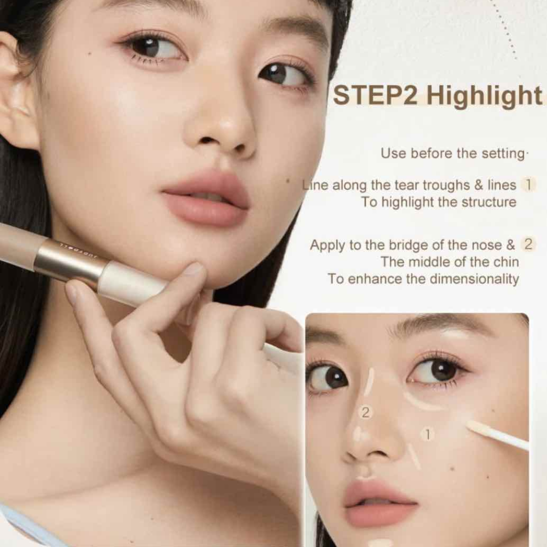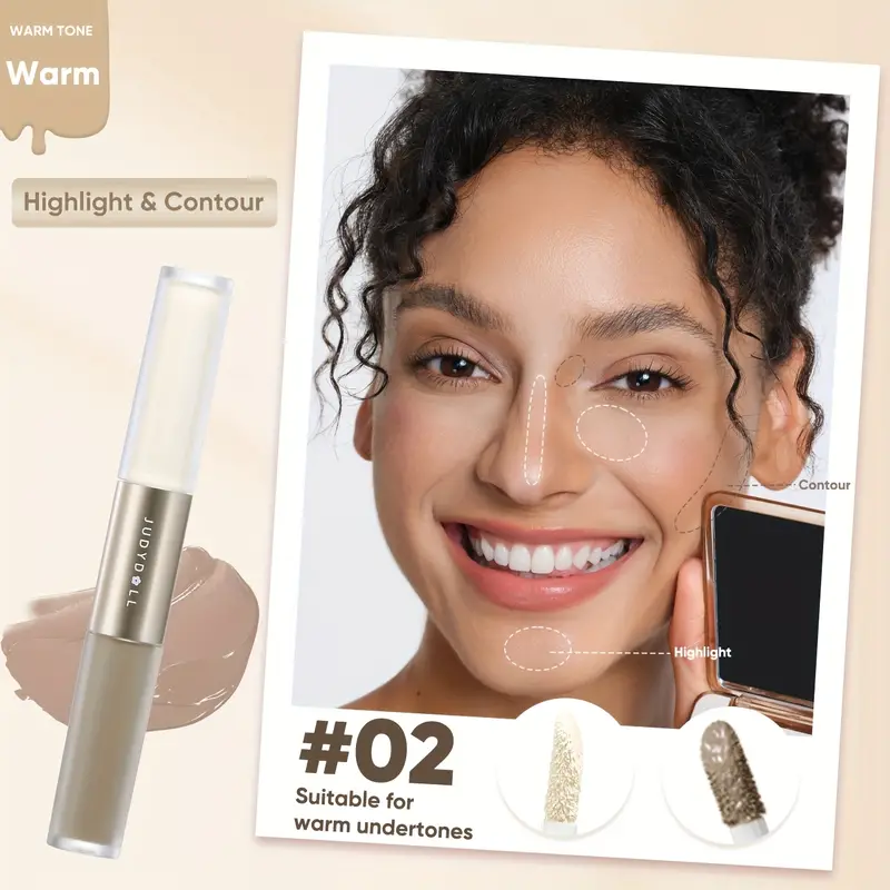 Tạo Khối Và Bắt Sáng 2 Đầu Dạng Kem Judydoll Liquid Highlighter & Contour Duo được thiết kế 2IN1 với 1 đầu highlight và 1 đầu tạo khối vô cùng tiện lợi.