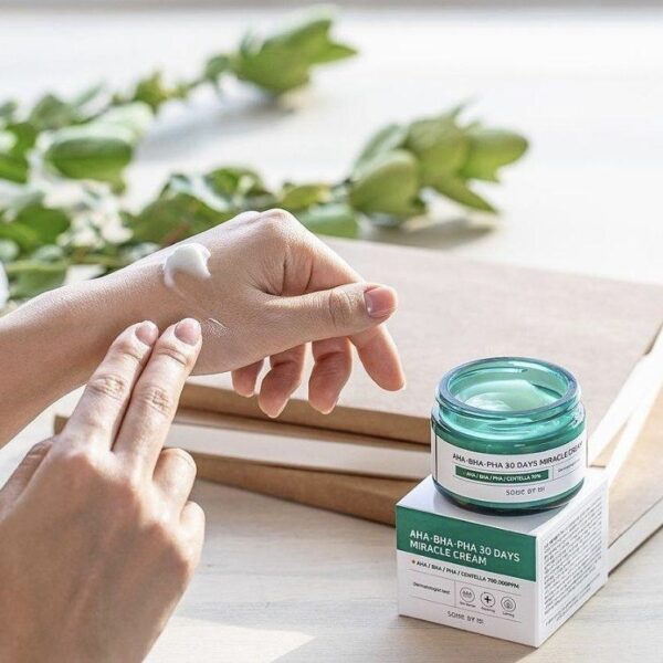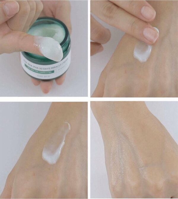 Kem Dưỡng Giảm Mụn Some By Mi có chứa thành phần chứa AHA, BHA, PHA là các thành phần cực kỳ quan trọng trong việc chăm sóc da hiện nay. Các thành phần này sẽ giúp làm bong lớp da chết, làm sạch da, kháng viêm, giảm nguy cơ gây ra mụn. Hơn thế nữa, sản phẩm còn giúp thúc đẩy tế bào da tái tạo, giảm nếp nhăn, giúp ngăn ngừa lão hóa và nuôi dưỡng da săn chắc, khỏe mạnh. Kem có dạng gel ẩm, hấp thụ vào da nhanh chóng, không gây bết dính hay bóng nhờn, không làm nặng mặt, mang lại cảm giác tươi mát khi sử dụng