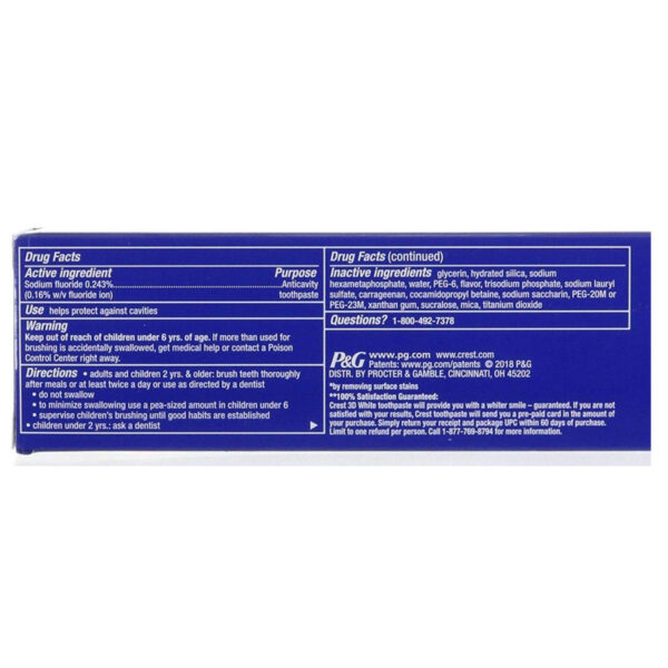 Kem Đánh Răng Crest 3D White Advanced Whitening 158g Giúp Tẩy Sạch Vết Ố Và Mang Lại Hàm Răng Trắng Sáng