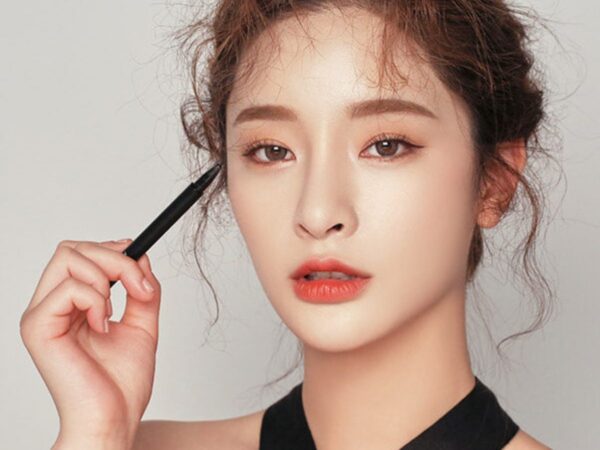 – Dùng mắt nước vẽ đường viền trên. Với viền mắt dưới, tán đậm ở đuôi mắt.
