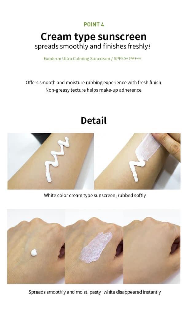 Kem Chống Nắng Exoderm Ultra Calming Suncream SPF50+/PA+++ 40ml có chỉ số SPF50+/PA+++ với 4 thành phần chức năng ch.ống tia tử ngoại có khả năng ch.ống nắng mạnh mẽ, đồng thời hỗ trợ giảm thiểu tác động da phức tạp và nâng tông siêu đỉnh, lớp finish mịn mướt cho da sáng bóng.