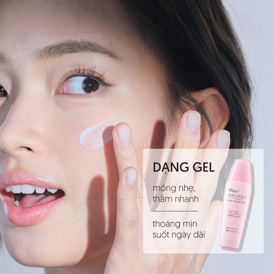 Gel Chống Nắng Dưỡng Da Trắng Mịn Sunplay Skin Aqua Silky White GelSPF 50+ PA++++ có các thành phần bao gồm: Cyclopentasiloxane, Water, Ethylhexyl Methoxycinnamate, Zinc Oxide, Methyl Methacrylate Crosspolymer, Dimethicone, PEG-9 Polydimethylsiloxyethyl Dimethicone, Simmondsia Chinensis (Jojoba) Seed Oil, Isononyl Isononanoate, Talc, Niacinamide, Hydrated Silica, Triethylhexyl Trimellitate, Phenyl Methicone, Ascorbyl Glucoside, Tocopheryl Acetate, Sodium Hyaluronate, Arginine, Hydrolyzed Collagen, Glycol Dimethacrylate Crosspolymer, Butylene Glycol, Diethylamino Hydroxybenzoyl Hexyl Benzoate, Bis-Ethylhexyloxyphenol Methoxyphenyl Triazine, Hydrogen Dimethicone, Acrylates/Dimethicone Copolymer, Polystyrene, Polyvinyl Alcohol, Disodium EDTA, Acrylates/C10-30 Alkyl Acrylate Crosspolymer, Triethanolamine.
