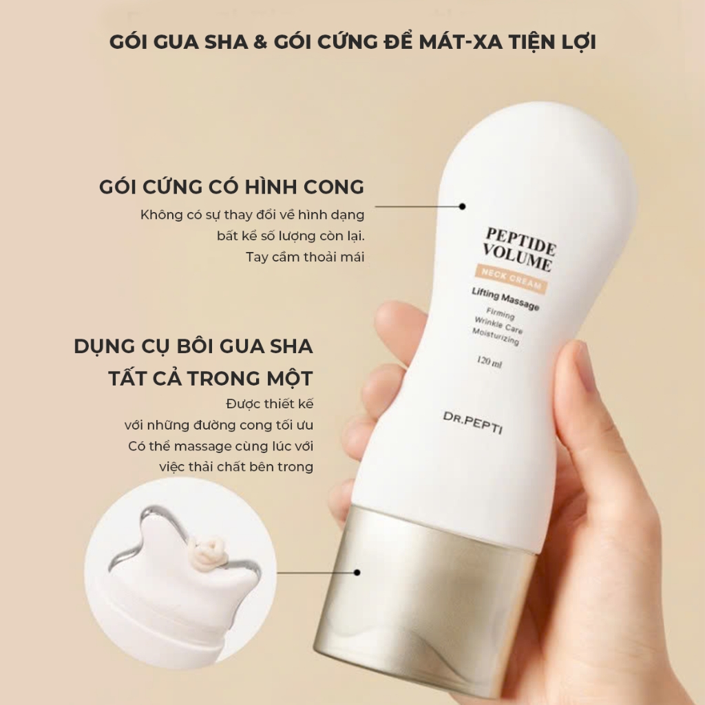 Kem Dưỡng Da Vùng Cổ Dr.Pepti Peptide Volume Neck Cream là sản phẩm kem dưỡng chuyên biệt dành cho vùng da cổ, được nghiên cứu và phát triển bởi thương hiệu mỹ phẩm Hàn Quốc Dr.Pepti. Sản phẩm này tập trung vào việc cung cấp độ ẩm, cải thiện độ đàn hồi và làm săn chắc da vùng cổ, giúp giảm thiểu sự xuất hiện của nếp nhăn và các dấu hiệu lão hóa.