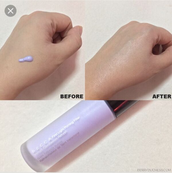 – Kem lót Becca First Light Priming Filter 30ml màu tím hoa cà, mang đến sự tươi tắn, rạng rỡ cho gương mặt. Sản phẩm dùng dưới lớp trang điểm mặt, nhờ vậy mà lớp trang điểm có thể lâu trôi, giữ nét rạng rỡ suốt ngày dài.