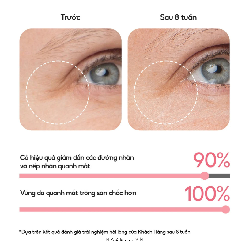 – Bước 1: Lấy 1 lượng nhỏ cỡ hạt ngọc trai, bôi 1 lớp mỏng nhẹ ở vùng da quanh mắt.