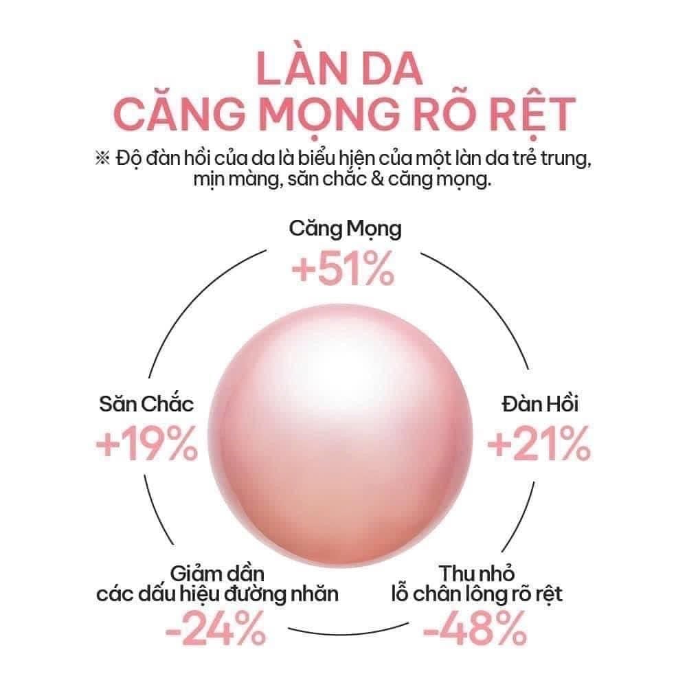 – Thành phần chứa Collagen với kích thước phân tử nhỏ hơn giúp hiệu quả thẩm thấu và tan trong da duy trì đến 24hrs hiệu quả cấp dưỡng ẩm.