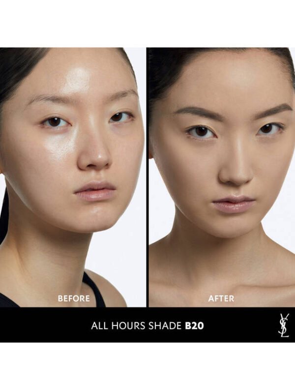 – YSL All Hours Foundation còn nổi bật với khả năng giữ cho lớp nền bền lâu suốt 24h đồng hồ, do đó các nàng có thể thoải mái tung tăng tham gia mọi hoạt động mà chẳng sợ lớp trang điểm bị xuống tone hay trôi quá nhanh.