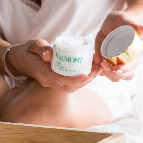 Valmont Prime Renewing Pack với kết cấu mịn như kem, mặt nạ xóa đi dấu hiệu lão hóa, mệt mỏi và nếp nhăn ngay khi vừa sử dụng, trong khi làm mới làn da. Da trở nên rạng rỡ, mịn màng, nếp nhăn giảm dần, lỗ chân lông thu nhỏ và kết cấu tinh tế.
