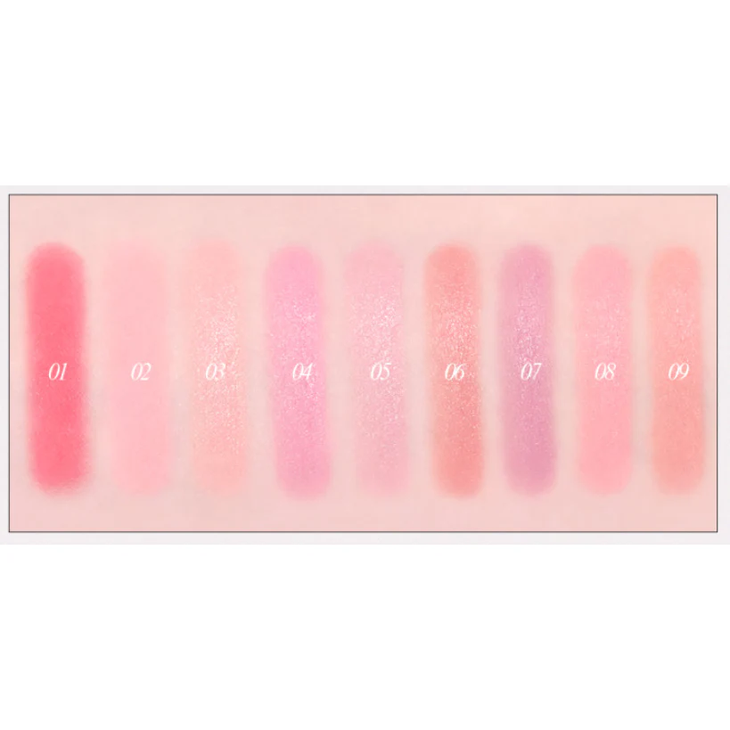 01 Starwberry, 02 Peach, 03 Cherry Blossom, 04 Silhouette, 05 Taro Milk, 06 Roseny, 07 Memorable, 08 Tutu, 10 Peak, 11 Daze