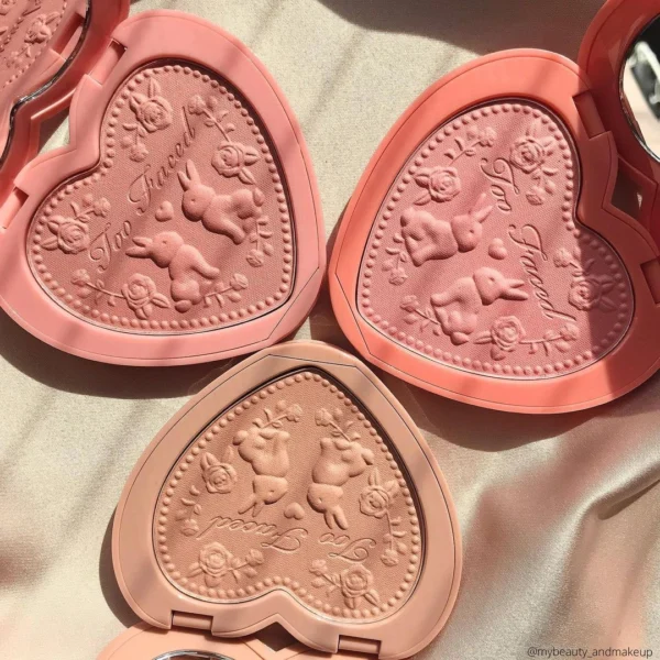 – Thiết kế hộp phấn khá nhỏ xinh,đi kèm gương soi, thuận tiện cho các nàng có thể soi gương dặm phấn. Mặt phấn được in nổi rất tinh xảo hình hai chú thỏ và patterns rất đáng yêu.