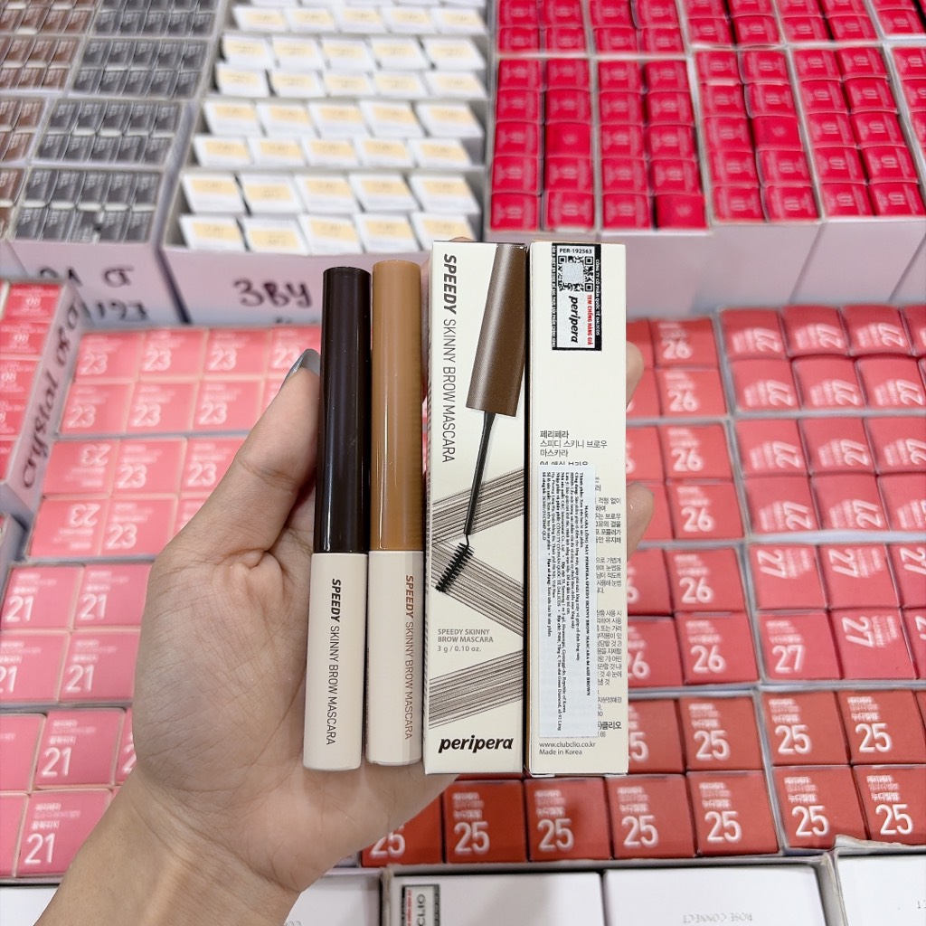 – Mascara Mày Peripera Speedy Skinny Brow Mascara độ bám màu và độ bền cao. Phần mascara không thấm nước, không nhanh trôi và bám lâu trên da, ngay cả khi đổ mồ hôi hay trời mưa.