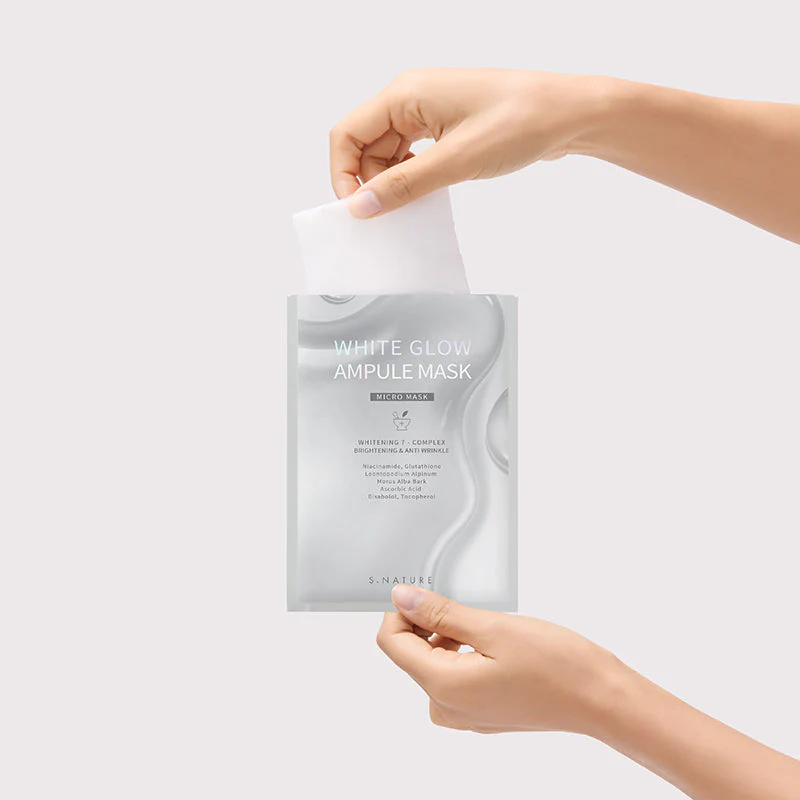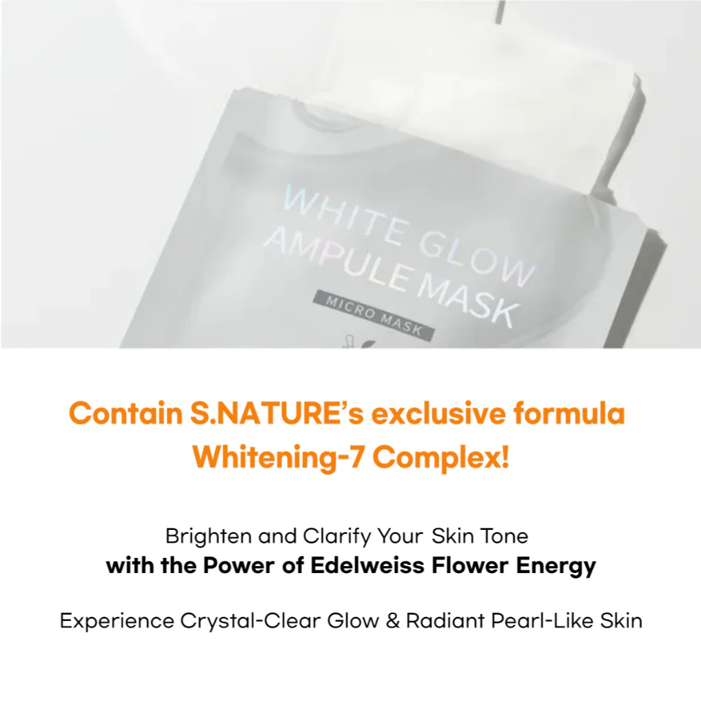 Mặt Nạ S.Nature White Glow Ampule dưỡng ẩm và làm sáng chuyên sâu, tập trung vào các đốm đen, tình trạng da không đều màu và xỉn màu