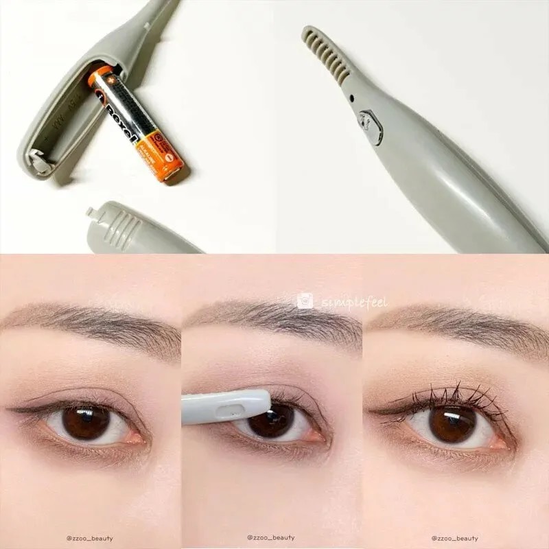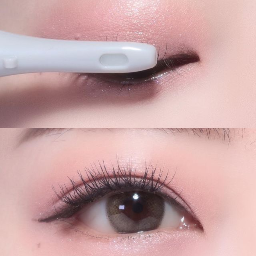 - Hoặc, dùng mặt làm nóng từ dưới lên trên, giữ ở gốc mi khoảng 1-2 giây để tạo độ cong. Sau đó, có thể dùng mặt lược để chải mi.