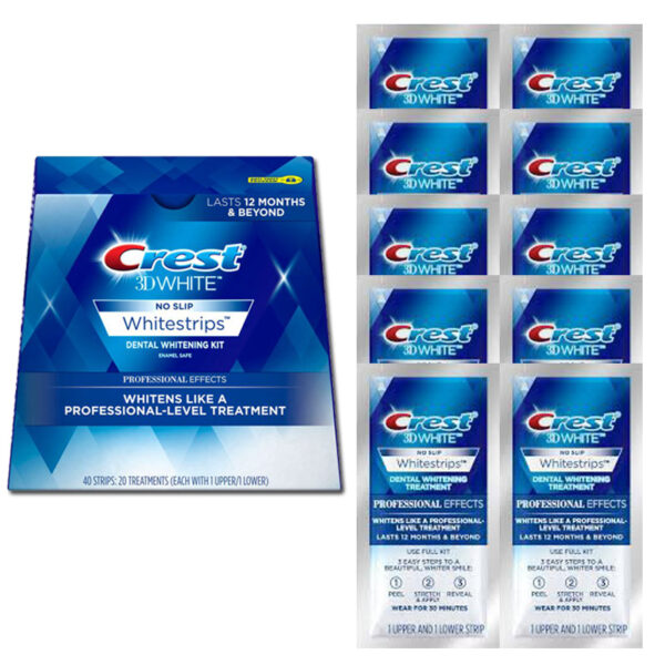 Crest 3D White Professional Effects của Crest thuộc P&G Hoa Kỳ là giải pháp đem đến cho người dùng sự hài lòng tương đương với chi phí chỉ bằng 1/10 dự kiến so với khi sử dụng các dịch vụ tẩy trắng nha khoa chuyên nghiệp vốn tốn kém hàng chục triệu đồng và đòi hỏi nhiều thời gian. Với cùng công thức hoạt chất sử dụng trong các phương pháp làm trắng răng tại các phòng khám nha khoa, và được chứng nhận bởi Hiệp hội Nha khoa Mỹ, Crest 3D White Professional Effects an toàn tuyệt đối cho men răng trong quá trình sử dụng. Răng sẽ trắng hơn rõ rệt chỉ sau 3 ngày sử dụng đầu tiên (30 phút dán miếng dán mỗi ngày). Công nghệ Advanced Seal tích hợp giúp miếng dán cố định chắc chắn trên răng trong suốt thời gian dán và hoàn toàn không gây trở ngại cho các công việc sinh hoạt thông thường như trò chuyện, làm công việc nhà, hay kể cả uống nước mà không gây cảm giác khó chịu