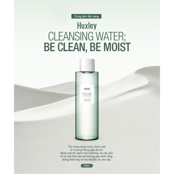Nước Tẩy Trang Chiết Xuất Xương Rồng Huxley Cleansing Water; Be Clean, Be Moist là sản phẩm tẩy trang dạng lỏng có thành phần chiết xuất từ cây xương rồng giúp cấp ẩm cho da, loại bỏ sạch lớp trang điểm và bụi bẩn ẩn sâu bên trong lỗ chân lông. Công thức không chứa chất bảo quản, không chứa xà phòng, duy trì độ pH tự nhiên của da nên an toàn với mọi loại da.