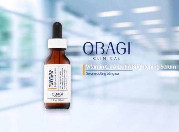 Obagi Clinical Vitamin C+ Arbutin Brightening Serum – tinh chất dưỡng da mang tính đột phá mạnh mẽ, áp dụng công thức nghiên cứu tiên tiến và độc quyền, chứa thành phần chiết xuất giàu hoạt tính, kết hợp hoàn hảo giữa Vitamin C, L-ascorbic, Arbutin,… giúp cải thiện các nhược điểm trên da cùng các dấu hiệu lão hóa, trị thâm mụn, cân bằng sắc tố da, làm mờ thâm nám, giảm thiểu nếp nhăn, kiểm soát dầu nhờn, kháng khuẩn, chống oxy hóa và các gốc tự do, tăng cường hệ miễn dịch tự nhiên, tái tạo hàng rào ẩm bảo vệ da, ức chế sắc tố melanin, tăng sinh collagen, dưỡng da sáng hồng tự nhiên.