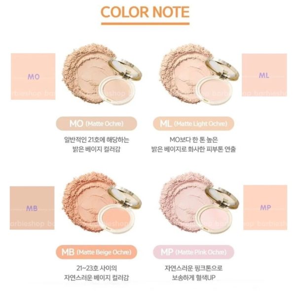 [MO] Matte Ochre – Màu vàng đất. Màu vàng đất lợt sẽ nhanh chóng làm làn da trông sáng hơn.