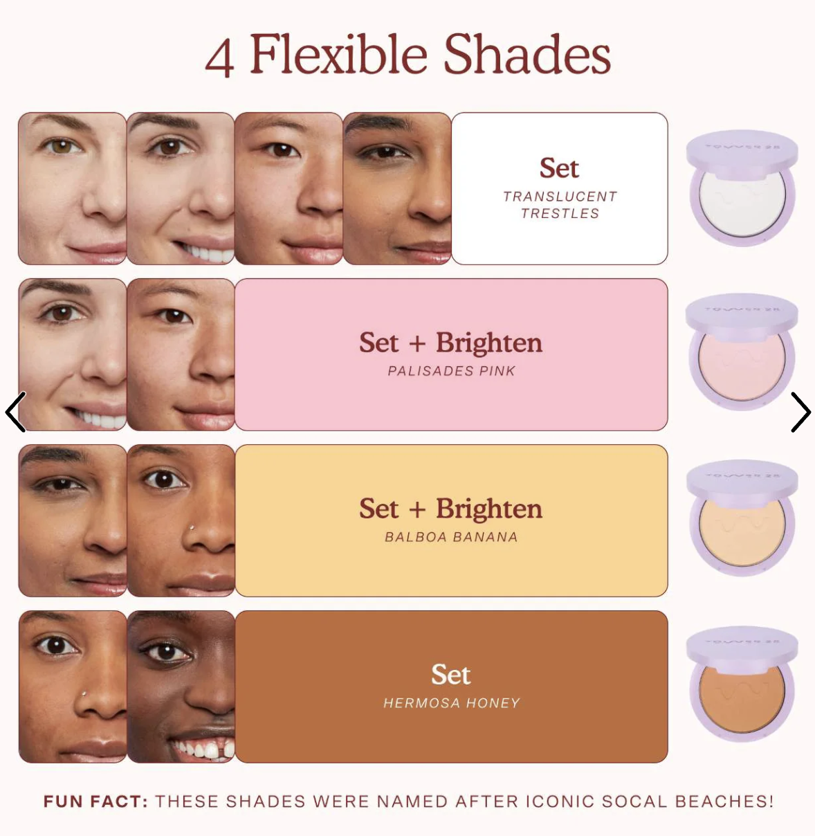 Phấn phủ dạng nén Tower 28 GetSet Blur là sản phẩm phấn phủ giúp làm mờ, mịn da với tp lành tính cho da nhạy cảm. Phấn phủ giúp lớp makeup bền, hạn chế dính ra khẩu trang, áo,.. trôi khi đổ mồ hôi.