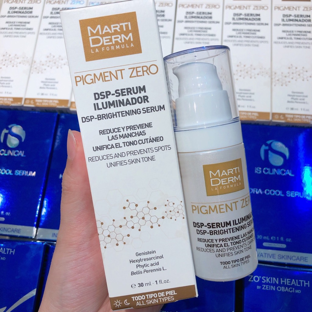 MartiDerm Pigment Zero DSP Serum Illuminator được tạo ra với công dụng hỗ trợ điều trị sau HQ. Với thành phần hoạt tính có hiệu quả ức chế sự sản xuất Melanin, tăng cường khả năng làm sáng và trắng da từ sâu bên trong, bảo vệ hoàn toàn khỏi các yếu tố môi trường bên ngoài. Để làm được điều, công thức sản phẩm đã được cải tiến nhằm giải quyết triệt để các vấn đề liên quan đến sắc tố.