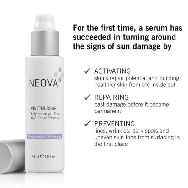 Hiện tại Neova đang là một trong số ít những hãng chiếm thế thượng phong trong lĩnh vực DNA Repair này. Serum Neova DNA Total Repair giúp phục hồi những tế bào bị hư tổn, cung cấp dưỡng chất nuôi dưỡng làn da khỏe mạnh từ sâu bên trong.
