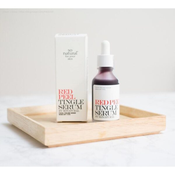 Tinh chất tái tạo da Red Peel Tingle Serum là một trong những sản phẩm tẩy tế bào chết hóa học của thương hiệu So’Natural. Phương pháp tẩy tế bào chết hóa học này cho phép tinh chất len lỏi vào tận từng lỗ chân lông, đào thải tế bào chết, dầu thừa, bụi bẩn còn vương trên da, đồng thời kích thích sản sinh tế bào mới khỏe và hồng hào hơn.