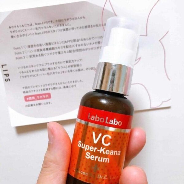 Serum se khít lỗ chân lông Labo Labo VC Super Keana của Nhật mang hiệu quả cao chỉ sau 3-4 tuần sử dụng .Với các hoạt chất chiết xuất mẫu đơn, hạt đào, tía tô giúp se khít lỗ chân lông, làm mềm mịn da, vitamin C nuôi dưỡng da trắng hồng, săn chắc.