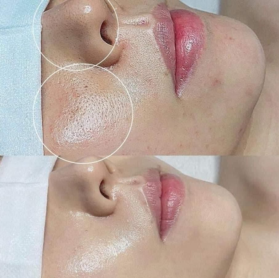 - Sử dụng một lượng vừa đủ serum se khít lỗ chân lông (1 đến 2 lần bơm tùy vào diện tích khuôn mặt) cho vào tay và thoa lên mặt.