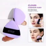 Set 2 Mút Jessup Cloud Cushion Puff and Powder Puff bao gồm bông phấn nền Rubycell và bông phấn phủ hình tam giác làm từ nhung siêu mềm. Bộ đôi này mang đến lớp nền mịn màng như phun, tán đều lớp trang điểm chỉ trong 5 giây và hiệu quả như nhau với cả sản phẩm khô và ướt. Dù bạn dùng kem nền dạng lỏng hay phấn phủ, những miếng mút trang điểm và bông phấn này đều mang đến cho bạn lớp nền mịn màng, chính xác và không bị vón cục, bền màu suốt cả ngày.