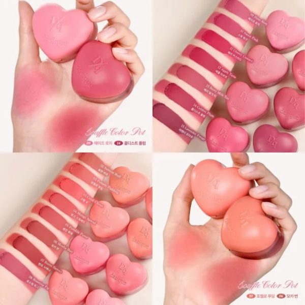 Dasique Souffle Color Pot là dòng son kem bùn từ thương hiệu Dasique, nổi bật với kết cấu nhẹ nhàng và sắc màu tự nhiên, làm hài lòng nhiều tín đồ làm đẹp. Sản phẩm được yêu thích nhờ khả năng lên màu mịn màng và tạo hiệu ứng căng bóng tự nhiên trên môi.