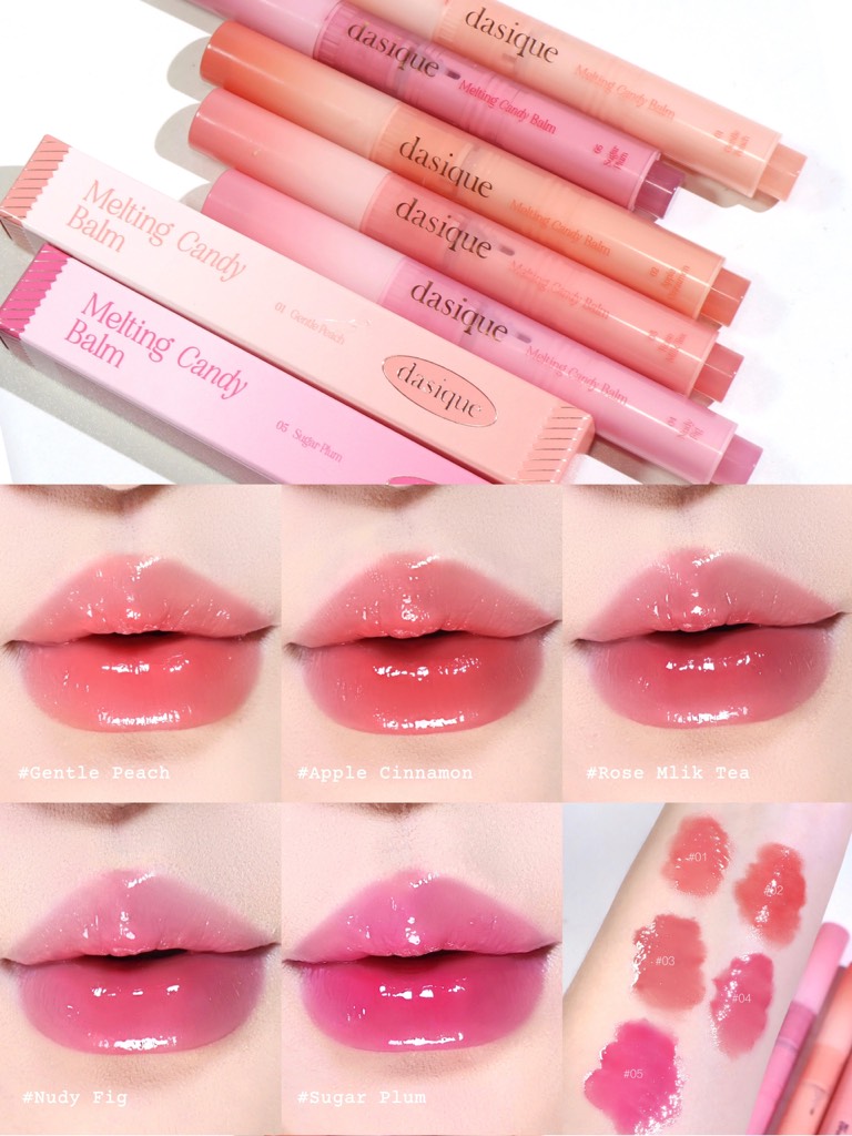 – Son Dưỡng Có Màu Dasique Melting Candy Balm với chất son melting balm hiệu ứng trên môi xinh qá xinh, fill rãnh môi xịn xò, vừa dưỡng môi, lên màu lại siêu chuẩn.