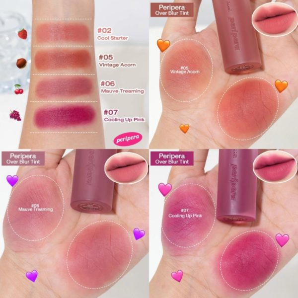 Peripera Over Blur Tint – Làm mờ đáng kinh ngạc trên da của bạn! Trang điểm quá môi hoàn thành. Peripera Over Blur Tint là dòng son mộng mơ cho hiệu ứng mờ lì mịn màng, đôi môi bạn sẽ ngay tức thì được làm đầy, mướt mịn và chẳng nhìn thấy dấu vân môi.