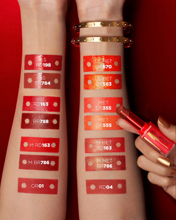 Màu đỏ vẫn luôn là màu của đam mê và sức mạnh. 12 sắc màu nổi bật của dòng son Shu Uemura đang hình thành nên xu hướng của năm 2021, bao gồm màu đỏ lửa (oxy fire); dải sắc màu đa dạng trải dài từ đỏ pha cam; cam cháy đến màu hồng san hô; đỏ nâu của bộ sưu tập son Iron Reds; và màu đỏ biểu tượng của Shu Uemura qua thời gian RD163.
