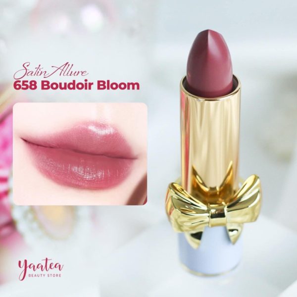 – Thuộc bộ sưu tập Allure của dòng son Satin không nhắc đến cũng ngầm hiểu được rằng chất son em này mịn, màu lên sẽ để lại lớp finish bóng nhẹ trên môi.