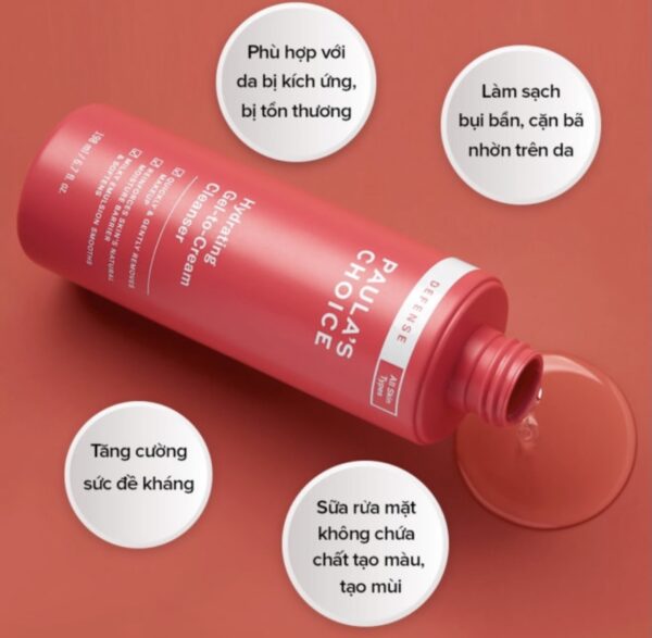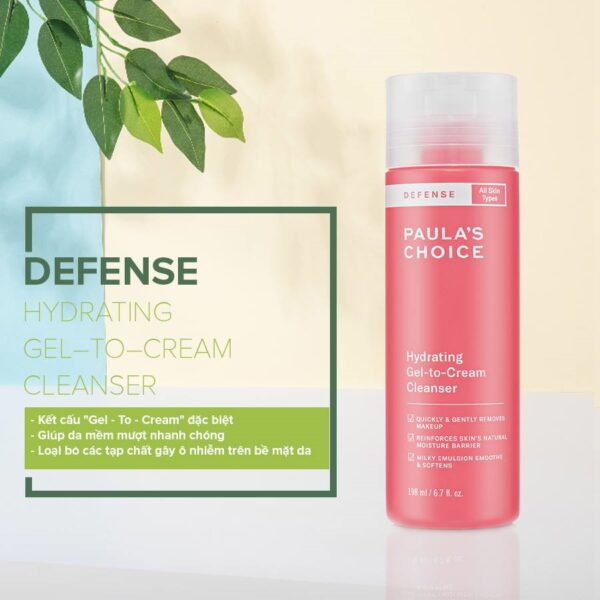 Sữa Rửa Mặt Paula’s Choice Defense Hydrating Gel To Cream 198ml Loại Bỏ Hết Những Bụi Bẩn, Cặn Bã Nhờn Trên Da