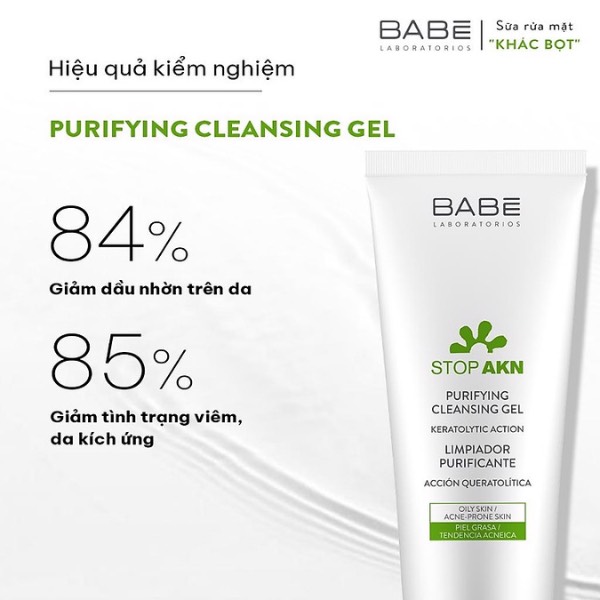Sữa rửa mặt da dầu mụn Babe Stop Akn cho da dầu mụn là sản phẩm của thương hiệu Laboratorios Babé, chứa phức hợp Cytobiol® Iris 2% (Zinc Sulfate, Vitamin A, Iris Extract) giúp giảm viêm, điều tiết bã nhờn, tái tạo da.