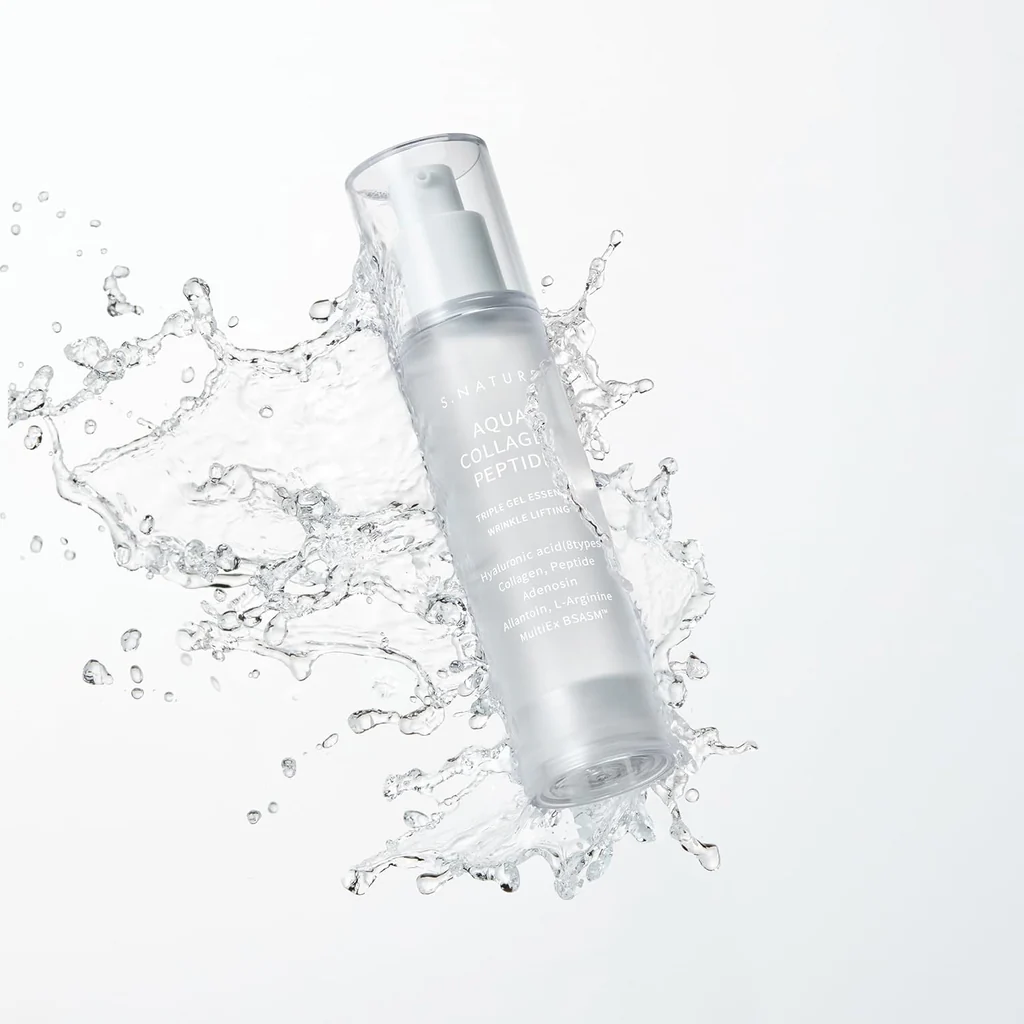 Tinh chất S.Nature Aqua Collagen Peptide Triple Jell Essence đáp ứng đủ các yêu cầu: cấp ẩm + ngăn ngừa lão hoá + làm dịu da. Ngoài ra giúp nâng cơ, chốn.g nhăn và tăng độ đàn hồi, làm dịu da và tăng cường hàng rào bảo vệ da. Quá đủ cho một sản phẩm tinh chất dưỡng da.